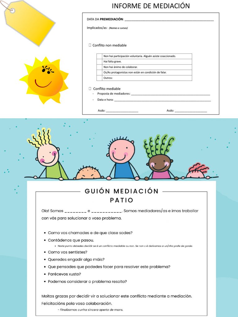 Informe que terán, os mediadores, nunha carpeta para recoller todos os datos. Ao finalizar cada patio, lévase ao arquivo, e se topan unha emerxencia comunícase a Lía ou a Pablo.