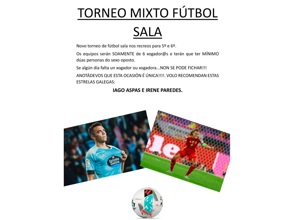 Nesta liña, durante o mes de xaneiro poñeremos en marcha unha iniciativa moi especial: a creación das e dos mediadores de fútbol. Serán compañeiros e compañeiras vosas que recibirán unha pequena formación para axudar a que as situacións difíciles no campo se poidan resolver dun xeito máis tranquilo, xusto e dialogado. O seu traballo comezará ao mesmo tempo que o noso torneo mixto, no que participarán equipos formados por nenos e nenas, fomentando así a igualdade, a inclusión e o xogo limpo.